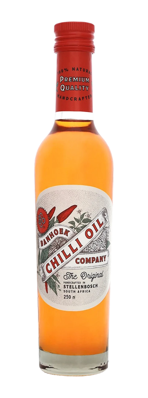 Banhoek Chilli Oil is a handcrafted, premium grade, artisan chilli oil made from just two ingredients, the highest quality rapeseed oil and dried Thai Birdseye chillies. 100% natural, no preservatives, GMO free.