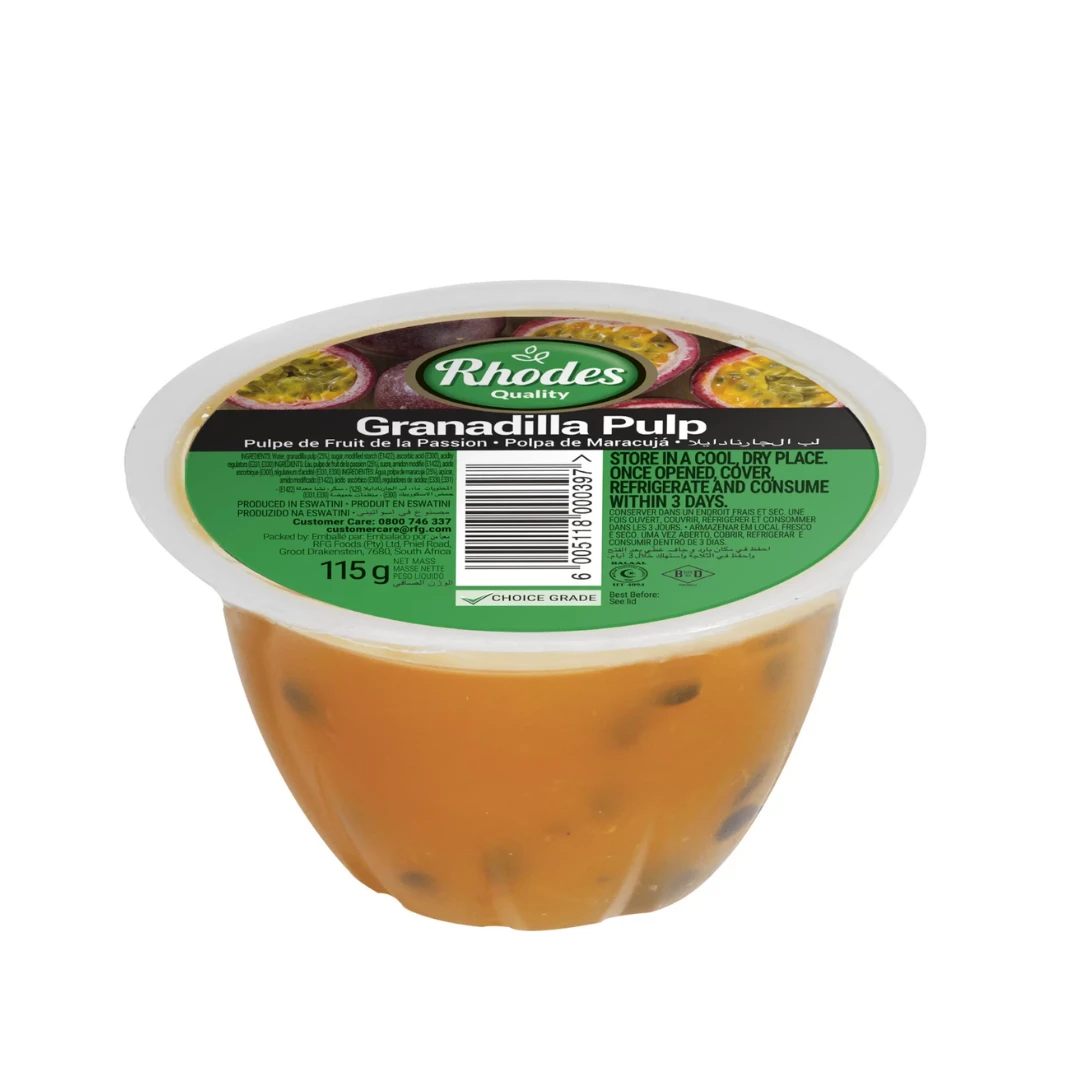 Ingredients: Water, Sugar, Granadilla (15%), Chemically Modified Starch (E1422), Lemon Juice Concentrate, Preservative (Sodium Benzoate [E211]), Colourant (E160A)